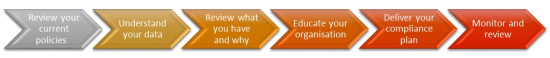 You’ll notice there is very little technology highlighted in those initial steps, maybe something to help you to understand your current data sets, but apart from that, it’s policies, procedures and education.
